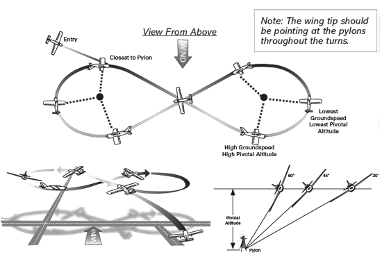 - To maintain line of sight reference with the pylon (pitch forward if point moves toward nose and pitch back if point moves toward tail).