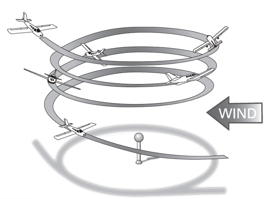 - Choose a reference point off wing with a turn to be initiated INTO the wind